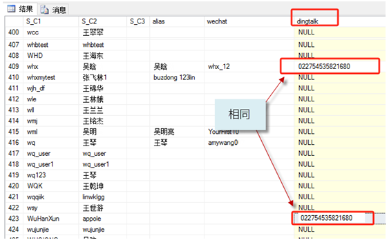 用戶提示不存在的判斷及解決方法 2023/11/15 分類:產品中心 產品手冊 問題中心 858 用戶不存在的判斷及解決方法 問題描述 今天whx 賬號登錄的時候 ,突然提示賬號不存在,無法登錄 進入后臺,通過人員管理模型查找賬號:whx 問題查找 打開數據庫管理器 進行數據庫查詢 SELECT TOP 1000 [S_C1] ,[S_C2]? AS NAME ,[S_C3] ,[s_C28] as alias ,[s_C30] as wechat ,[s_C43] as dingtalk ,[S_C4] As UKey FROM [OIOrg].[dbo].[OI_ORG_T008] 查詢后發現 本次出現這個用戶不存在的原因,就是 ,因為 這2個記錄相同了造成的 當然,用戶可能出現的情況有很多原因 ,這里明確一下 這個5個 字段,每一個字段里面 都不允許有重復數值出現 標簽:手冊問題 上一篇: 關于Gungho網站登錄后界面無反應的應對 下一篇: Excel數據導入Mobox低代碼平臺