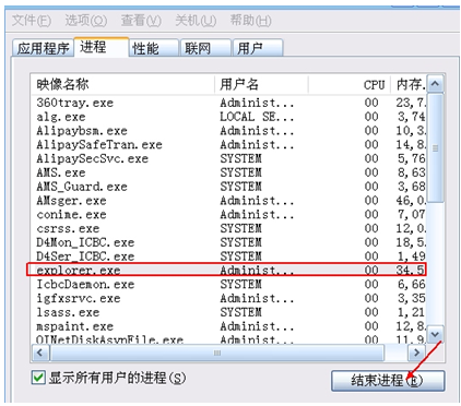 1、通過windows 任務(wù)管理器將 explorer.exe 強(qiáng)行結(jié)束
