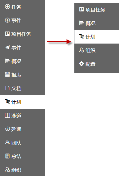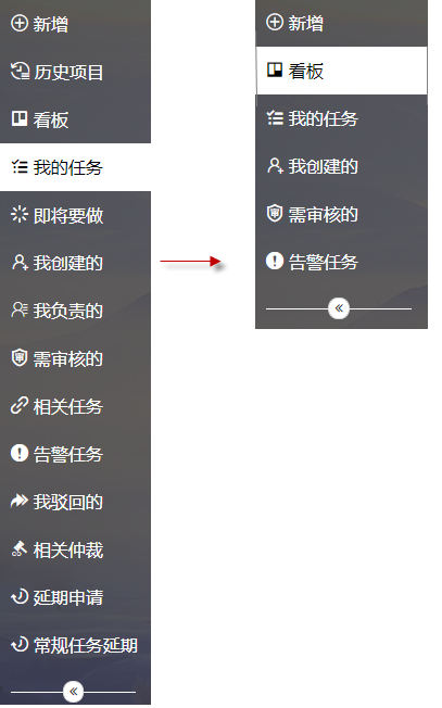 定義后,進(jìn)入這類項(xiàng)目的時(shí)候,菜單已經(jīng)按要求配置