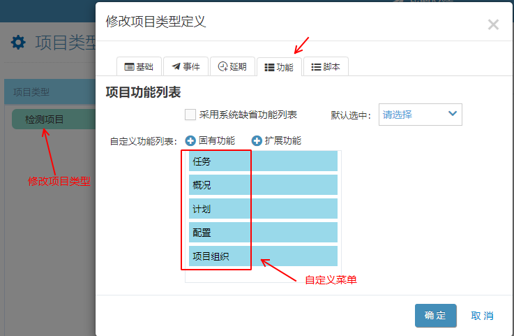 通過項(xiàng)目分類定義 (8012功能點(diǎn)),修改某類項(xiàng)目的菜單