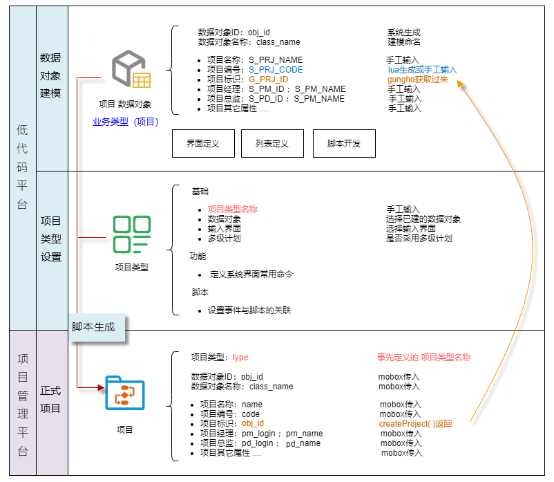 Mobox 數(shù)據(jù)對象先創(chuàng)建 –》之后通過腳本生成Gungho的項目 –》得到Gungho項目的prj_id –》更新mobox數(shù)據(jù)對象的 G_PRJ_ID