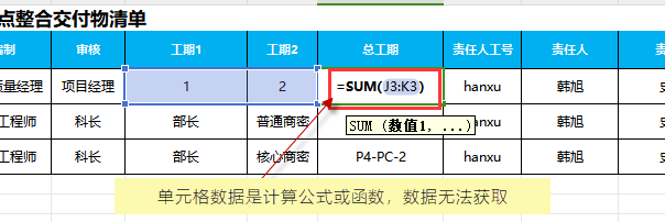 單元個里面的數(shù)據(jù),只能是字符串或數(shù)值。若是計算公式或函數(shù) ,將無法獲取