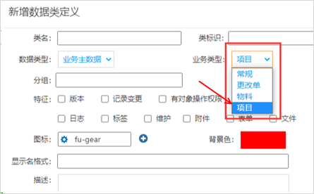 因為,我們是為Gungho的項目管理做配套,所以在mobox建立數(shù)據(jù)模型的時候,有類型需要選擇? ,業(yè)務(wù)類型必須是 “項目”