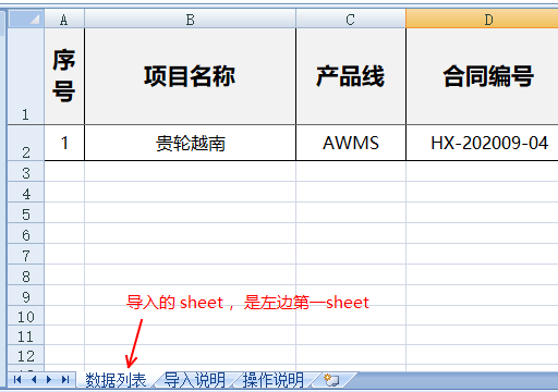 這個系統(tǒng)只能導(dǎo)入,左邊第一個sheet (命名無所謂)(注意:若數(shù)據(jù)列表 這個sheet左邊還有隱藏的sheet,那么系統(tǒng)也不能獲取 數(shù)據(jù)列表sheet頁的數(shù)據(jù))