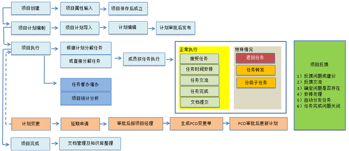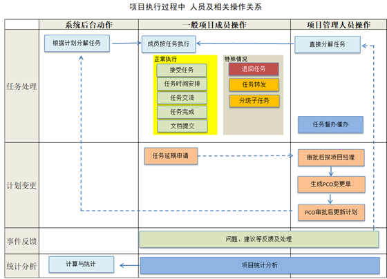 當項目計劃審批通過正式生效后,該版本的項目計劃就處于執(zhí)行狀態(tài)。Gungho系統(tǒng)后臺會根據(jù)項目計劃自動分解計劃任務(wù)。這些任務(wù)會分派到對應(yīng)的執(zhí)行人。執(zhí)行人收到任務(wù)后,可以對任務(wù)進行處理。項目成員若發(fā)現(xiàn)問題可以在項目內(nèi)進行問題反饋(任務(wù)管理、反饋管理怎樣處理,在后面內(nèi)容詳細介紹)。