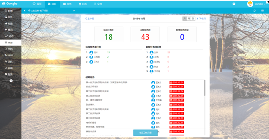 能對本項目的任務(wù)執(zhí)行狀態(tài)進行統(tǒng)計分析,能看到完成的排行等信息