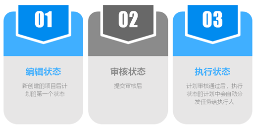 項目計劃中創(chuàng)建的任務(wù)并不能馬上執(zhí)行,必須要通過審核后系統(tǒng)才能觸發(fā)任務(wù)下達。項目計劃有以下3個狀態(tài)